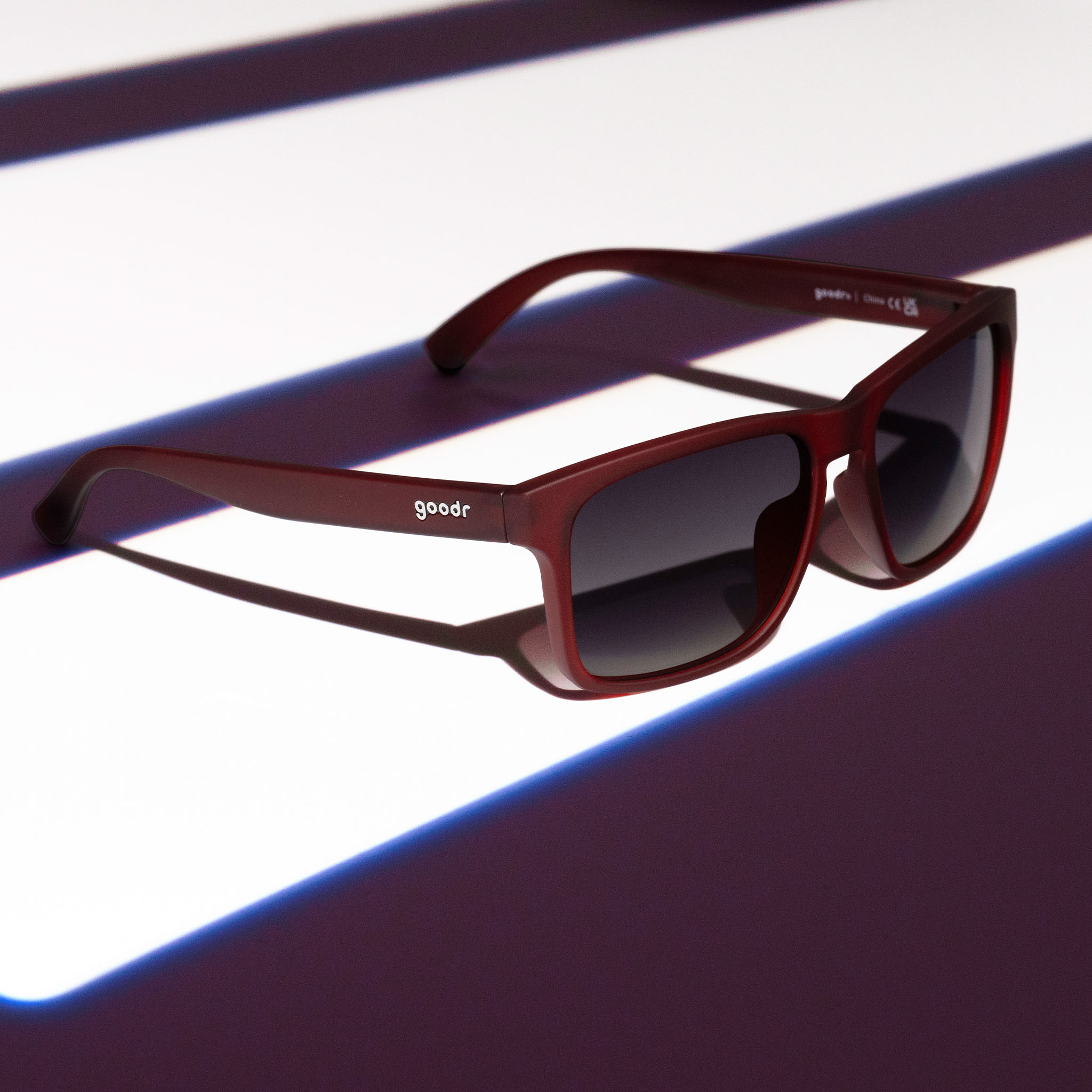 Blood Moon Barbecue sunnies light up your look with dark red Grand G frames and black gradient lenses. Whether you’ve got a big noggin or just like to live large. these shades bring heat without burning your eyes. No slip. no bounce. all confidence. Perfect for grilling under a lunar eclipse. spicing up your outfit. or casually convincing strangers you’ve mastered the art of celestial BBQ.