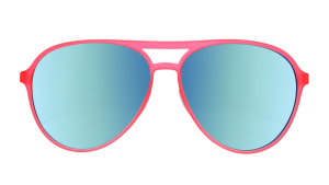 Carl will be your co-pilot in these pink and teal sunglasses fit for a flamingo. Our Mach G aviator shades are no slip. no bounce. offer full UV400 protection. and will have you feeling the need…the need…for SPEED!!!