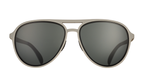 Black and gray sunglasses for folks who are business on the course and party animals in the clubhouse. No slip. no bounce. gray aviator frames stay put no matter how wild things get. and the polarized black high contrast lenses sharpen ground visibility. (If it’s anything like last weekend. you’ll need it.)