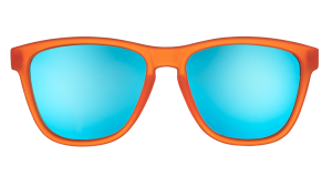 Orange and blue sunglasses that live to stand out from the drove. (A group of donkeys is a drove. Weird. right?) No slip. no bounce frames that stay put even when you gallop (tbh it’s really a spirited mosey). and polarized blue lenses with UV400 protection worth braying about.