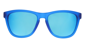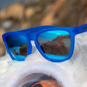 These blue-on-blue sunglasses are what fever dreams are made of. The no slip. no bounce frames stay put no matter how wildly you sweat. sleep walk. or travel between realms. Blue polarized lenses offer UV400 protection and reduce glare off luck dragon fur.