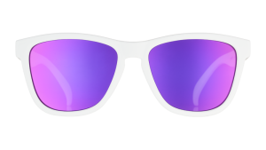 Ready to get your side scroll on? You will be once you acquire a pair of these GAME goodr Side Scroll Eye Roll white sunglasses with polarized purple lenses.